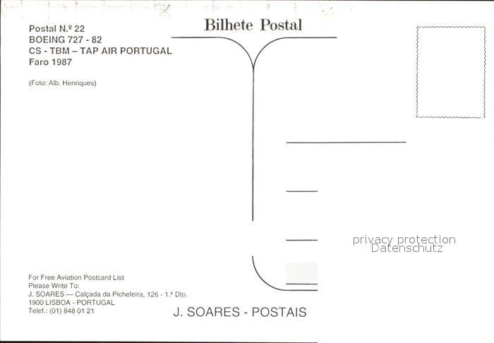 Flugzeuge Zivil TAP Air Portugal Boeing 727-82 CS-TBM postalisch nicht gelaufen Erhaltung siehe scans