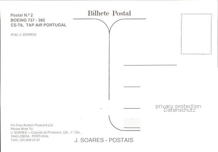 Flugzeuge Zivil TAP Air Portugal Boeing 737-382 CS-TIL postalisch nicht gelaufen Erhaltung siehe scans