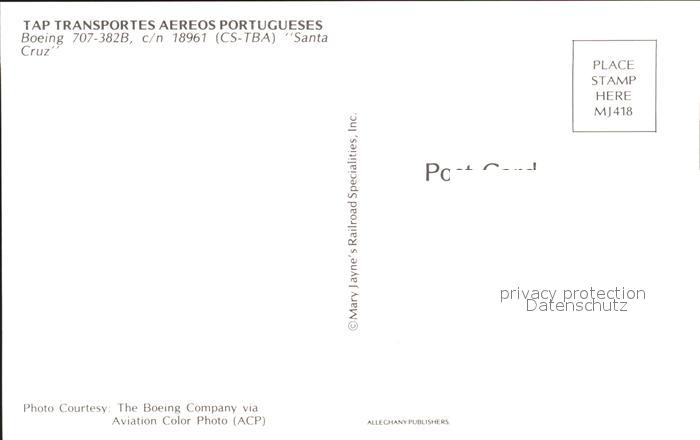 Flugzeuge Zivil TAP Boeing 707-382B c/n 18961 CS-TBA Santa Cruz postalisch nicht gelaufen Erhaltung siehe scans