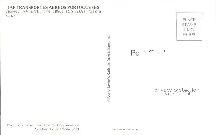 Flugzeuge Zivil TAP Transportes Aereos Portugueses Boeing 707-382B c/n 18961 CS-TBA postalisch nicht gelaufen Erhaltung siehe scans