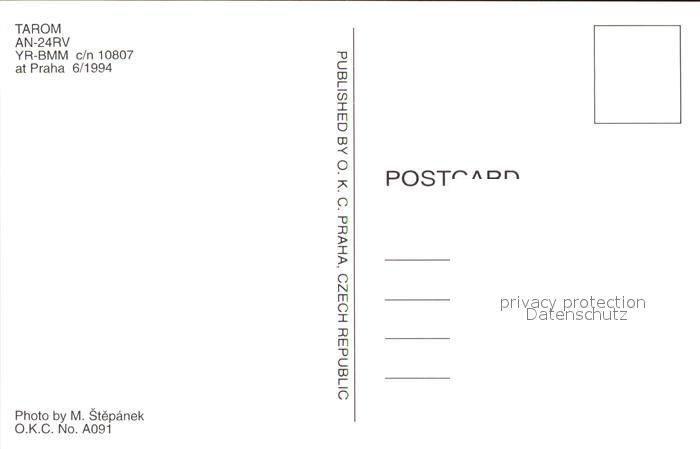 Flugzeuge Zivil Tarom AN-24RV YR-BMM c/n 10807 postalisch nicht gelaufen Erhaltung siehe scans