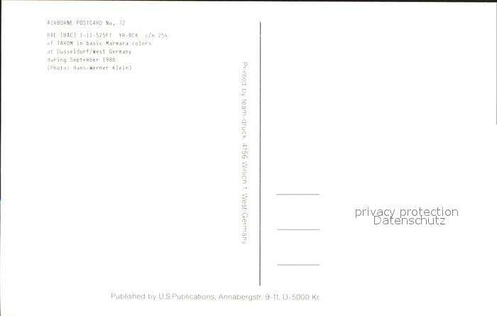 Flugzeuge Zivil Tarom BAe Bac 1-11-525FT YR-BCK c/n 254 postalisch nicht gelaufen Erhaltung siehe scans