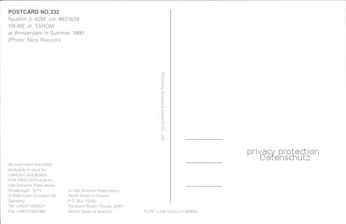 Flugzeuge Zivil Tarom Ilyushin IL-62M c/n 4831628 YR-IRE postalisch nicht gelaufen Erhaltung siehe scans