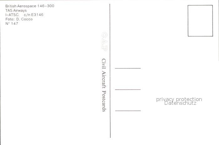 Flugzeuge Zivil TAS Airways British Aerospace 146-300 I-ATSC c/n E3146 postalisch nicht gelaufen Erhaltung siehe scans