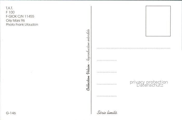 Flugzeuge Zivil TAT European Airlines F-100 F-GIOK c/n 11455 postalisch nicht gelaufen Erhaltung siehe scans