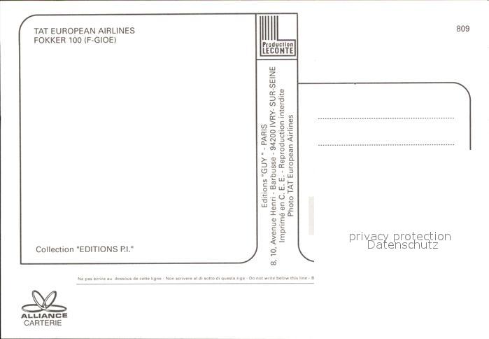 Flugzeuge Zivil TAT European Airlines Fokker 100 F-GIOE postalisch nicht gelaufen Erhaltung siehe scans