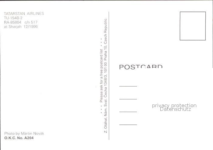 Flugzeuge Zivil Tatarstan Airlines TU-154B-2 RA-85804 c/n 517 postalisch nicht gelaufen Erhaltung siehe scans