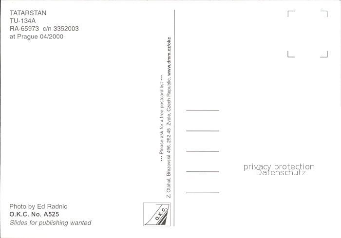Flugzeuge Zivil Tatarstan TU-134A RA-65973 c/n 3352003 postalisch nicht gelaufen Erhaltung siehe scans