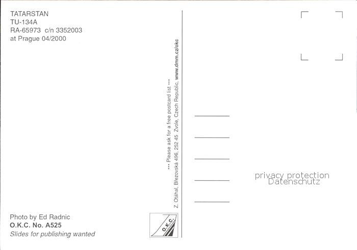 Flugzeuge zivil Tatarstan TU-134A RA-65973 c/n 3352003 Prag postalisch nicht gelaufen Erhaltung siehe scans