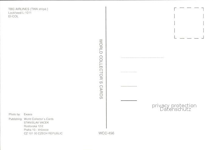 Flugzeuge Zivil TBG Airlines TWA Stripe Lockheed L-1011 EI-COL postalisch nicht gelaufen Erhaltung siehe scans