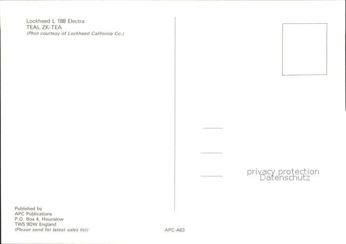 Flugzeuge Zivil Teal Lockheed L-188 Electra ZK-TEA postalisch nicht gelaufen Erhaltung siehe scans