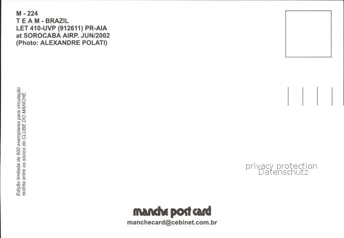 Flugzeuge Zivil TEAM Let 410-UVP 912611 PR-AIA postalisch nicht gelaufen Erhaltung siehe scans