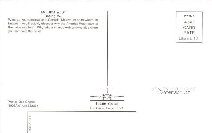 Flugzeuge Zivil Teamwork America West Boeing 757 N902AW c/n 23322 postalisch nicht gelaufen Erhaltung siehe scans