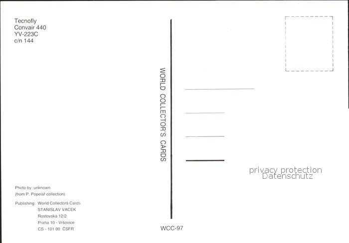 Flugzeuge Zivil Tecnofly Convair 440 YV-223C c/n 144 postalisch nicht gelaufen Erhaltung siehe scans