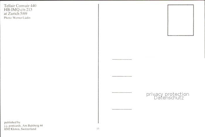 Flugzeuge Zivil Tellair Convair 440 HB-IMQ c/n 213 postalisch nicht gelaufen Erhaltung siehe scans