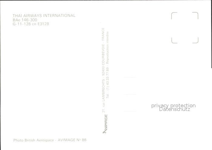 Flugzeuge Zivil Thai Airways International BAe 146-300 G-11-128 cn E3128 postalisch nicht gelaufen Erhaltung siehe scans