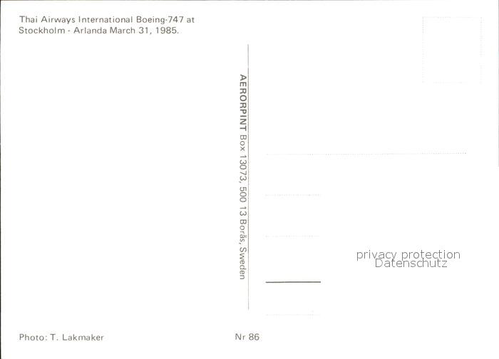 Flugzeuge Zivil Thai Airways International Boeing 747 Stockholm-Arlanda 1985 postalisch nicht gelaufen Erhaltung siehe scans