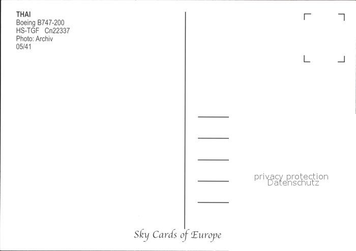 Flugzeuge Zivil Thai Boeing 747-200 HS-TGF Cn 22337 postalisch nicht gelaufen Erhaltung siehe scans