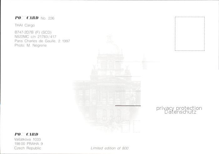 Flugzeuge Zivil THAI Cargo B747-2D7B N522MC c/n 21783/417 postalisch nicht gelaufen Erhaltung siehe scans