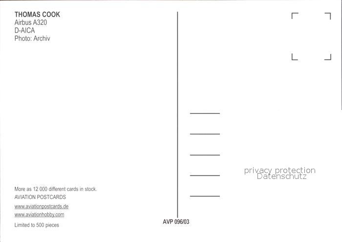 Flugzeuge Zivil Thomas Cook Airbus A320 D-AICA postalisch nicht gelaufen Erhaltung siehe scans