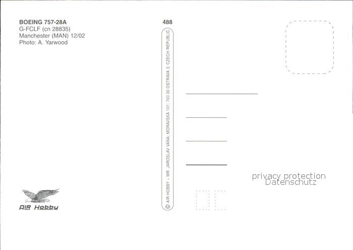Flugzeuge Zivil Thomas Cook Boeing 757-28A G-FCLF cn 28835 postalisch nicht gelaufen Erhaltung siehe scans