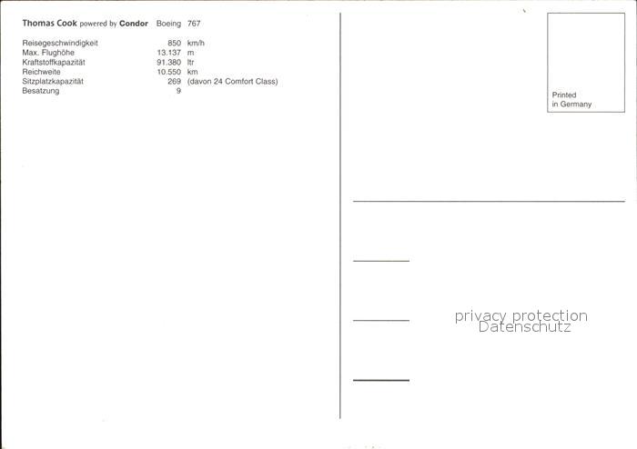 Flugzeuge Zivil Thomas Cook Boeing 767 postalisch nicht gelaufen Erhaltung siehe scans