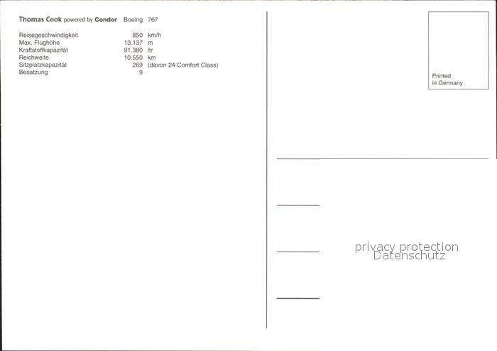 Flugzeuge Zivil Thomas Cook Boeing 767 postalisch nicht gelaufen Erhaltung siehe scans