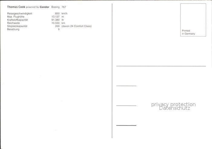 Flugzeuge Zivil Thomas Cook Boeing 767 postalisch nicht gelaufen Erhaltung siehe scans