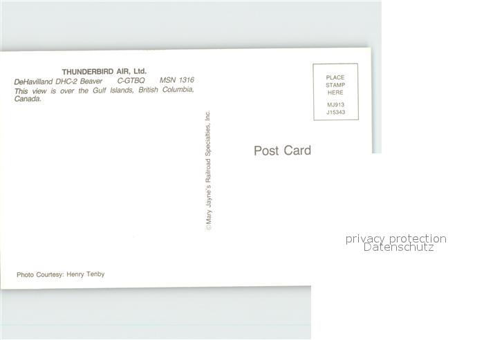 Flugzeuge Zivil Thunderbird Air DeHavilland DHC-2 Beaver C-GTBQ MSN 1316 postalisch nicht gelaufen Erhaltung siehe scans