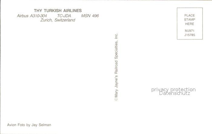 Flugzeuge Zivil THY Turkish Airlines Airbus 310-304 TC-JDA MSN 496 postalisch nicht gelaufen Erhaltung siehe scans