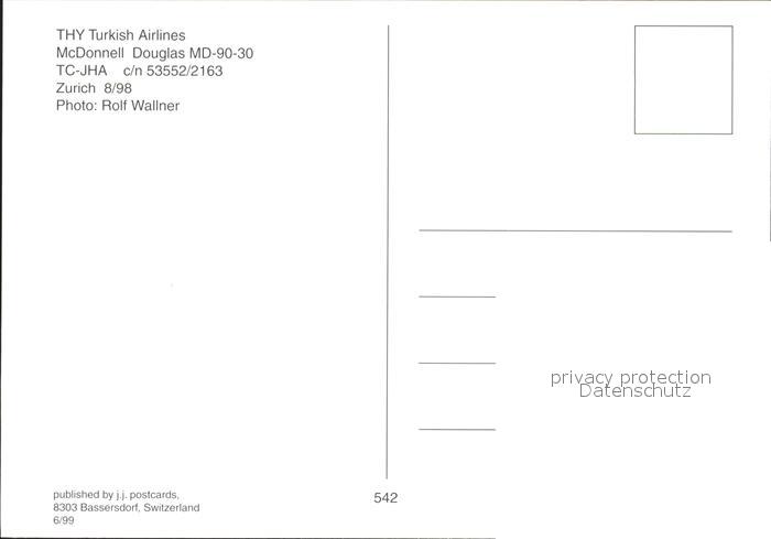 Flugzeuge Zivil THY Turkish Airlines McDonnell Douglas MD-90-30 TC-JHA postalisch nicht gelaufen Erhaltung siehe scans