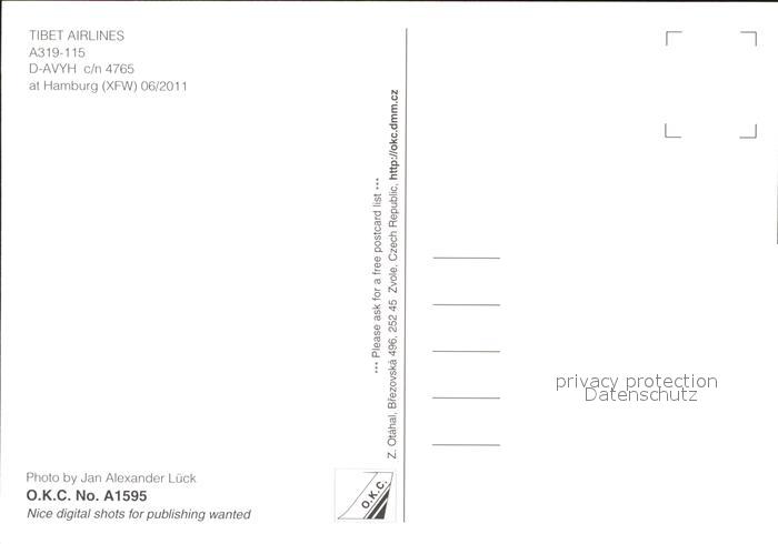 Flugzeuge Zivil Tibet Airlines A319-115 D-AVYH c/n 4765 postalisch nicht gelaufen Erhaltung siehe scans