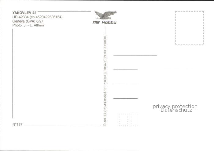 Flugzeuge Zivil Tiger Air Yakovlev 42 UR-42334 cn 4520422606164 postalisch nicht gelaufen Erhaltung siehe scans