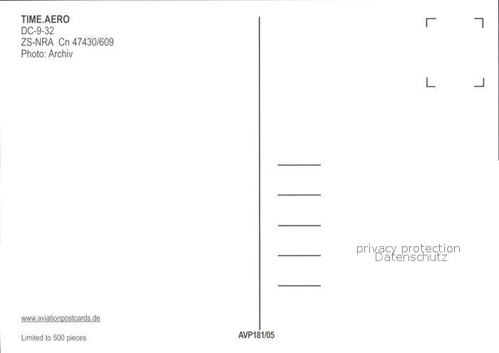 Flugzeuge Zivil Time Aero DC-9-32 ZS-NRA Cn 47430/609 postalisch nicht gelaufen Erhaltung siehe scans