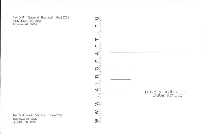 Flugzeuge Zivil Tjumenaviatrans Tu-154M Wasily Bachilov RA-85755 postalisch nicht gelaufen Erhaltung siehe scans