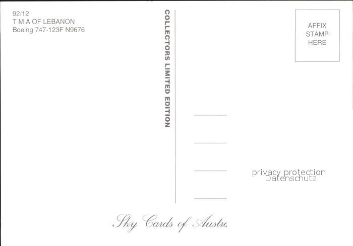 Flugzeuge Zivil TMA of Lebanon Boeing 747-123F N9676 postalisch nicht gelaufen Erhaltung siehe scans
