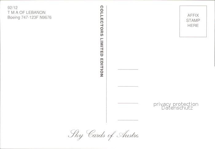 Flugzeuge Zivil TMA of Lebanon Boeing 747-123F N9676 postalisch nicht gelaufen Erhaltung siehe scans