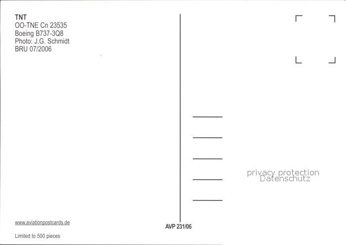 Flugzeuge Zivil TNT Boeing B737-3Q8 OO-TNE cn 23535 postalisch nicht gelaufen Erhaltung siehe scans