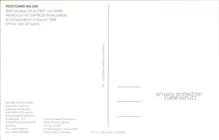 Flugzeuge Zivil TNT Express Worldwide McD Douglas DC-8-73CF c/n 45990 N816EV postalisch nicht gelaufen Erhaltung siehe scans