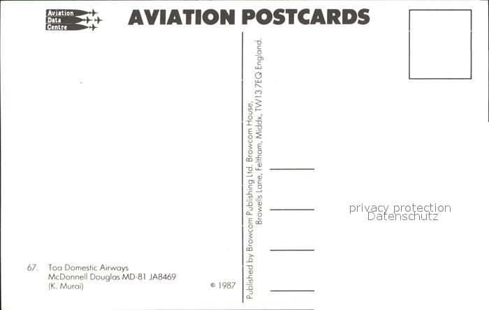 Flugzeuge Zivil Toa Domestic Airways McDonnell Douglas MD-81 JA8469 postalisch nicht gelaufen Erhaltung siehe scans