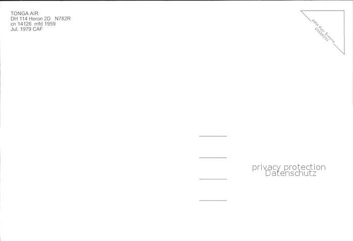 Flugzeuge Zivil Tonga Air DH-114 Heron 2D N782R cn 14126 postalisch nicht gelaufen Erhaltung siehe scans