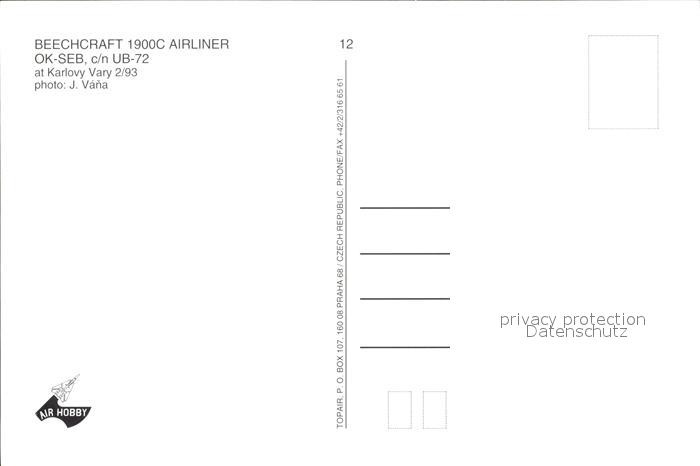 Flugzeuge Zivil Topair Beechcraft 1900C Airliner OK-SEB c/n UB-72 postalisch nicht gelaufen Erhaltung siehe scans