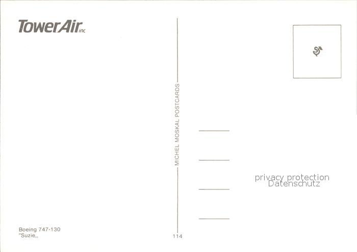 Flugzeuge Zivil Tower Air Boeing 747-130 Suzie postalisch nicht gelaufen Erhaltung siehe scans