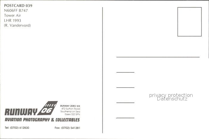 Flugzeuge Zivil Tower Air N606 B747 postalisch nicht gelaufen Erhaltung siehe scans