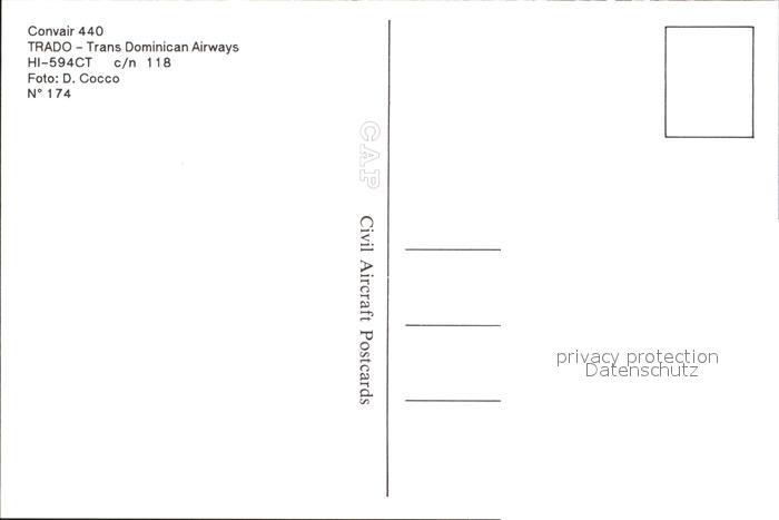 Flugzeuge Zivil TRADO Trans Dominican Airways Convair 440 HI-594CT c/n 118 postalisch nicht gelaufen Erhaltung siehe scans