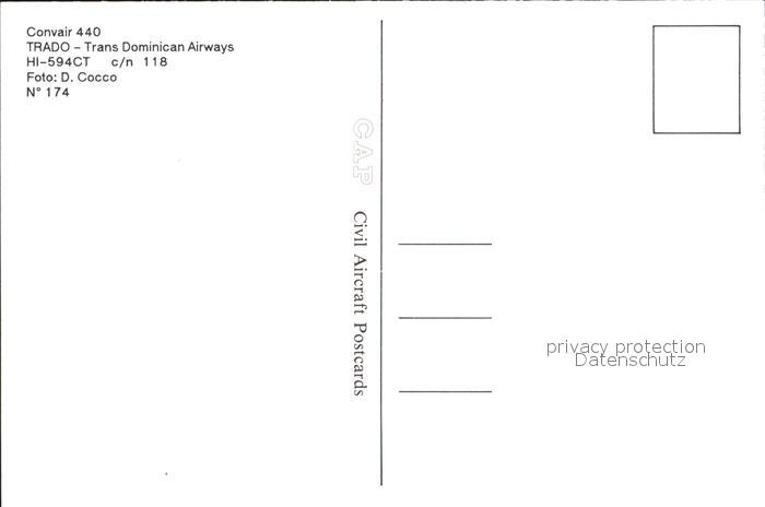 Flugzeuge Zivil Trado Trans Dominican Airways Convair 440 HI-594CT c/n 118 postalisch nicht gelaufen Erhaltung siehe scans