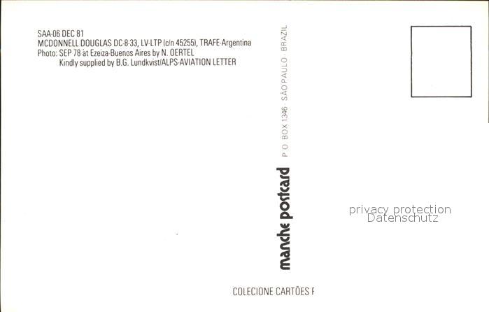 Flugzeuge Zivil Trafe Argentina McDonnell Douglas DC-8-33 LV-LTP c/n 45255 postalisch nicht gelaufen