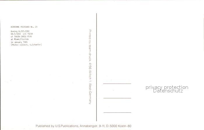 Flugzeuge Zivil Train Cargo Peru Boeing B707-338C OB-T-1264 c/n 19294 postalisch nicht gelaufen Erhaltung siehe scans