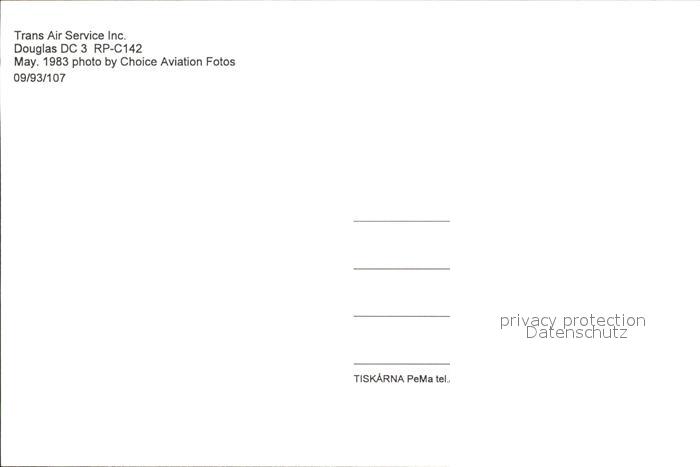 Flugzeuge Zivil Trans Air Service Douglas DC-3 RP-C142 postalisch nicht gelaufen Erhaltung siehe scans