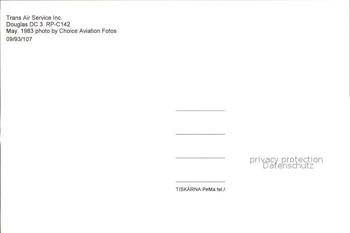 Flugzeuge Zivil Trans Air Service Ing. Douglas DC 3 RP-C142 postalisch nicht gelaufen Erhaltung siehe scans